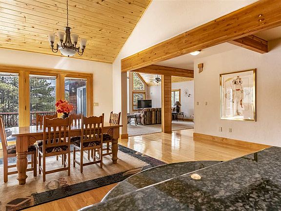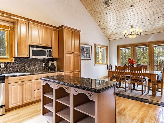 This custom home is located just across from Monte Verde Lake and is easily accessible all year 'round. It's just 5 minutes from the Angel Fire Country Club and Golf Course and Angel Fire Resort Ski and Bike Mountain. It features an open living/dining/kitchen design for ease of access and for friendly gatherings, no matter what is happening! There is a large family room with propane fireplace on the lower level, as well as a bedroom and bath on that level. The main living room has a wood burning fireplace and lots of windows for light and passive solar gain. There are 2 bedrooms and a bathroom on the main floor. The LARGE master is on the upper level and has a propane fireplace, large walk in closets and a spacious bathroom with granite counter tops, jacuzzi type tub and a walk in shower. The house is equipped with an ingenious system that automatically drains the pipes should the electricity go off and turns it back on when the power comes back. The garage has plenty of room for your cars and golf cart, 4 wheelers or any of your other recreational toys. The setting of 2.36 acres is one of large boulders and mixed conifer so that when you sit on either of the large decks you'll feel right at home in the mountains. This house comes completely furnished and ready for move in. Make generational memories and/or get some great rental income.