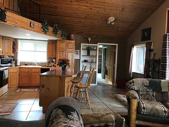 Bright and cozy log home at tne end of a private road on Blackadar Lane. This home is very country but close to town. Mature yard and garden spot! Includes apple trees and water rights. 3 bedroom, 2 bath with vaulted ceilings in open kitchen and living room! Oak, tile and carpet flooring. New wood stove insert plus electric cadet heaters! Large windows sporting awesome views. Newly built large attached carport. Both house and carport have metal roofs. There is also a barn, chicken coup and extra storage shed. Make an appointment to see today