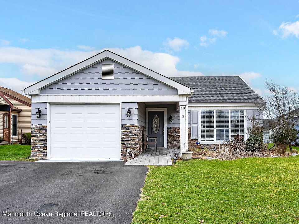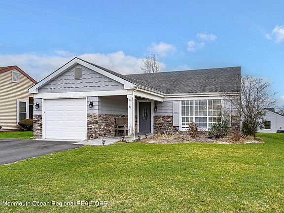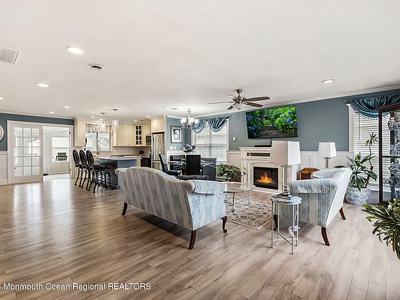 This Stunning Danbury Plus boasts a Remodeled Open Floor Plan. Spacious living room flows into Dining Area. State of the Art Kitchen with Gray Granite counter tops, Island and Back Splash. Stainless Steel Appliances, Recessed Lighting, Crown Molding. Newer Laminate Wood floors. Two remodeled bathrooms with custom tile. Wood Inlay, Custom Paint. Heated Four Season Room w/new carpet. Use for a 3rd bedroom for overnight guests. Newer Front Door ,Pavers & Stone Accent Exterior. Custom features. Cream raised panel kitchen cabinets, white farmhouse sink, new Kohler faucet, white subway tile backsplash, stainless steel appliances. Electric Panel updated in 2022. Shower/tub combo with tiled surround, newer vanity, glass shower door. Even a 1 Yr Home Buyer Warranty! Enjoy the many amenities in this 55+ Community. Show your fussiest buyer. Walking distance to shopping center and back gate. Room to park 3 cars. Expanded 2 car wide driveway plus a 1 car garage. Gas line is accessible (from outside the home on opposite wall of the gas wall mounted heater in living room) should buyer want gas cooking. Home has both electric baseboard heat as well as a gas heat in living room. Sunroom is heated (Sellers said they leave the french doors open to the Four Season Room in the summer & that it stays cool & comfortable. Use for a 3rd bedroom for overnight guests with the addition of a pull-out couch. Enjoy the amenities-rich, gated 55+ Community. This community offers clubhouse, tennis and golf facilities for members. Walking distance to shopping center and back gate. This home could be yours! Come fall in love!