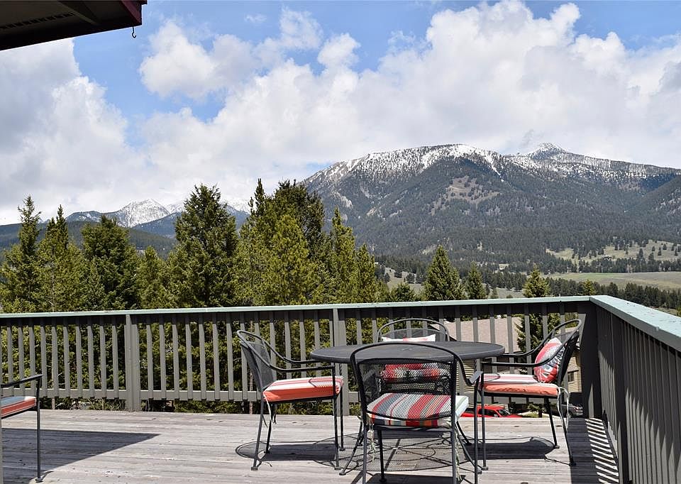 Lowest price per square foot in ALL of Big Sky, tremendous value! This spacious 2,788 sqft, 4 bedroom/ 3.5 bathroom condominium boasts gorgeous mountain views, an open kitchen and living room, additional living room/game room, private office, one car garage, and built in hot tub. Tucked away in the Hidden Village neighborhood, this location provides easy access to Town Center and Big Sky Resort, all the while keeping the feeling of seclusion within the trees away from the hustle and bustle. Just imagine relaxing and enjoying the amazing views from your own private oversized deck, and savoring delicious family meals in the fresh Montana air.