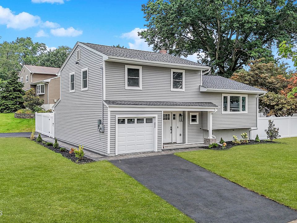 Welcome to 15 Blueberry Drive, where worry-free living awaits you! This meticulously renovated home has been revitalized from top to bottom, inside and out, ensuring peace of mind for years to come. Step through the inviting front door into a versatile layout that accommodates all your needs. On the main level, you'll find a conveniently located powder room and a spacious double-door closet for your coats and belongings. The family room offers flexibility as an office or potential additional bedroom, complete with sliding glass doors opening to a charming paver patioa perfect space for outdoor relaxation. Descending to the lower level unveils a private bedroom suite, featuring a full bath with a shower, ideal for guests or extended family. A utility room houses brand-new stacked washer/dryer and HVAC units, adding to the home's modern conveniences. Ascend the stairs from the foyer to discover a captivating open-concept living area that seamlessly connects the living room, dining room, and kitchen. The kitchen showcases exquisite stone countertops, stainless steel appliances, and a designer backsplash. An ingeniously designed area for your coffee or espresso maker ensures effortless mornings. Adjacent to the dining area, a deck beckons you to unwind and enjoy beverages amidst tranquil surroundings. The upper level hosts three generously sized bedrooms and another full bath, each room graced with pristine hardwood flooring. Downstairs, upgraded luxury vinyl plank flooring enhances the lower level's appeal. Outside, vinyl fencing encloses the professionally landscaped grounds, creating a private oasis. With two driveways providing ample off-street parking, convenience and accessibility are assured. Don't miss the opportunity to make 15 Blueberry Drive your new home an exceptional blend of modern amenities, thoughtful design, and comfort awaits.