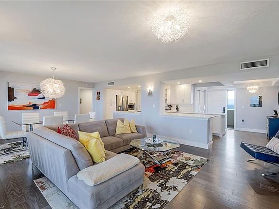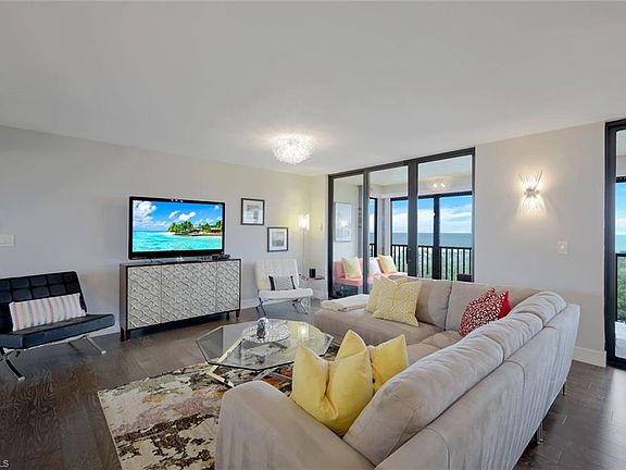 Do not miss your chance to own one of the most exquisite, completely RENOVATED & spacious homes in all of Vanderbilt Surf Colony. This RARELY available THREE BEDROOM unit boasts majestic bay & gulf views! From sunrise to sunset, you will be mesmerized by the scenery -- dolphin & manatee can easily be spotted from each window of this home. Every corner of this home was completely renovated to the highest standards. The floor plan is perfect with the kitchen, living & dining areas are all open to one another. The bedrooms are grand with TWO primary suites and an additional large guest BR. This is a rare opportunity to live in one of Naples' finest communities. In addition to the gorgeous interior (with plenty of storage space and a laundry room), the community pool overlooks the coastal waterway. Just steps to the beach (no worries about parking), kayak storage, boat slips for lease, bocce, tennis courts, close to dining, shopping, 5th Ave, Mercato -- you truly can have it all! Impeccably maintained and waiting for its' new owner. Come live a life of luxury; your castle in the sky awaits!