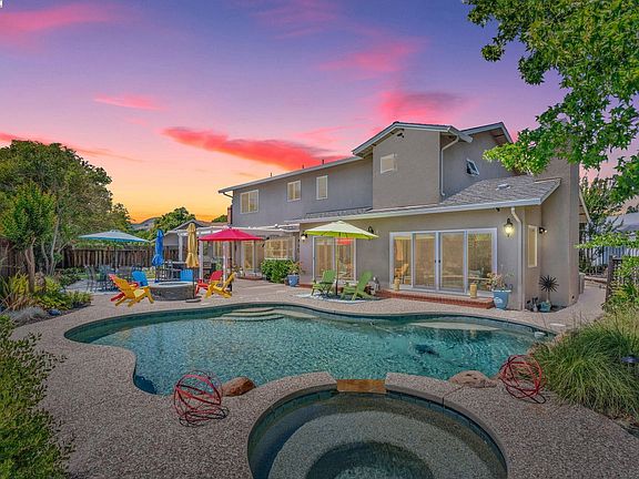 Welcome home! This home & property is one of a kind. Great court location adjacent to San Ramon Golf Club. Updated throughout. One bedroom & full bathroom downstairs. Permitted addition includes an additional downstairs living area w/fireplace, gorgeous bar & bathroom. There are 2 downstairs living areas plus dining/living room. Amazing primary suite as well. Primary bath is a private spa with huge steam shower, stand-alone soaking tub, gorgeous dual sink vanity, huge walk-in closet w/custom cabinetry, high ceilings & recessed lighting. Open kitchen/living area concept. Beautiful kitchen w/granite countertops, custom cabinetry & bay window looking out to backyard. There are 3 sets of sliding glass doors out to backyard: 1 from both living areas plus 1 from dining/living room. Lots of windows and a ton of natural light throughout this great home. Resort style backyard with pool (pebble tech), spa, built-in BBQ with sit at bar plus putting green. Backyard also has an outdoor shower with exterior access to bathroom. Updated, well cared for & beyond move-in ready. OPEN HOUSE 6/1 & 6/2 :-)