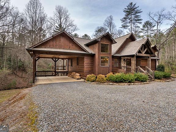 3BR | 3.5BA Craftsman Cabin on 2.97 Creekside Acres - Bootleg Mountain Subdivision Welcome to this stunning craftsman-style cabin nestled on 2.97 level creekside acres in the desirable Bootleg Mountain Subdivision. Designed for comfort and versatility, this 3-bedroom, 3.5-bath home features main-floor living with the primary bedroom and laundry conveniently located on the main level plus a 2-car carport for easy access and covered parking. Inside, the home offers an inviting open layout with granite countertops, a well-appointed pantry, laundry room, coat closet, and welcoming foyer. Thoughtful details and warm cabin finishes create the perfect blend of rustic charm and modern convenience. Ideal as a full-time residence, mountain getaway, or investment property. Enjoy entertaining and relaxing year-round with a hot tub, wet bar, and an expansive deck featuring a wood-burning fireplace, plus a cozy double-sided gas fireplace inside. The creek frontage provides a peaceful backdrop and beautiful views, with level land along the water's edge-perfect for outdoor enjoyment and gatherings. Centrally located between Blue Ridge, Blairsville, and Murphy, NC, this property places you minutes from wineries, breweries, hiking trails, kayaking, and world-class trout fishing. This exceptional mountain retreat offers privacy and an unbeatable location-a rare opportunity to own creekside living at its finest.