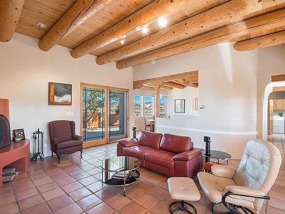 15 Bosque Loop is located only 25 minutes from downtown Santa Fe in the community of Eldorado. This pueblo style home is open and bright with mountain views and includes the classic Santa Fe style finishes such as saltillo tile, viga and rough-sawn ceilings, kiva fireplace, enclosed courtyards and portals. Perfectly sized at 1,680 sq ft, with a split floor plan of three bedrooms and two baths. Well maintained with new interior paint. The Eldorado community consists of approximately 2,650 homes and is known for great folks and rich culture.