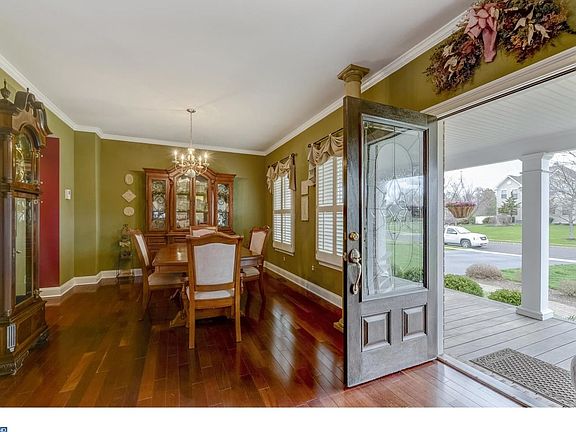 Picture Perfect in Robbinsville!! When arriving at this home, in the highly sought after Dalton Meadows community, you are immediately taken aback by the beautiful Ipe covered front porch with space for a double hanging swing and multiple rocking chairs to enjoy a cool evening! The home is impeccably landscaped and sits next to a spacious common area with community walking path, giving the appearance of an oversized lot. Through the front door, you are greeted by an exquisitely-decorated home with gleaming Brazilian Cherry hardwood floors. The floors extend from the dining room into the kitchen, family room, and breakfast room. The great room area features a three-sided gas fireplace and built-in entertainment unit. The newly updated gourmet kitchen has granite countertops, an island and an oversized breakfast bar with seating for the whole family! The breakfast room is filled with windows allowing views of the private back yard and creek. A sliding glass door leads onto a new oversized multi level PVC coated composite deck with lighted post caps that are attached to a timer for the perfect ambiance every night! Off of the family room is a spacious heated sunroom with vaulted ceilings, walls of windows, tile flooring and ceiling fan, perfect for all 4 seasons! The master bedroom has a sitting room that has been converted to an office, and a grand his-n-her walk in closet with professional organization. The master bath has a separate toilet room, a Jacuzzi tub, and a shower. The upstairs is rounded out by three additional, generously-sized bedrooms, another full bathroom and the laundry area. The beautiful finished basement has a gym, large gathering room, built in storage and refrigerator, a half bath, and sliding glass door that walks out onto a bluestone patio. Close to the highly rated Robbinsville Schools, MCCC, Princeton Rider University and only minutes away from the Hamilton and Princeton Train Stations, 195, 295, 130 and 95.