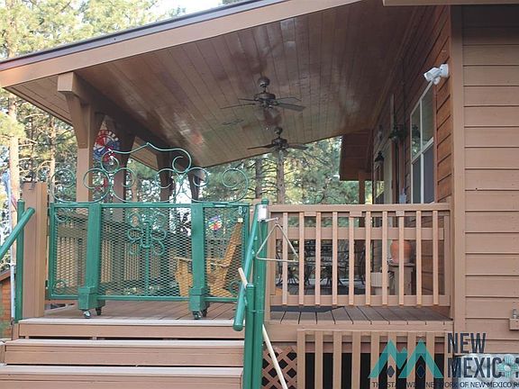 Where Elegant craftmanship meets impeccable care in the high timbers of Northern New Mexico. This well maintained mountain escape or fulltime family oasis is situated within the gates of the highly coveted Ticonderoga gates without being associated with the Home Owners Association. Property consist of two contiguous parcels. One containing 3.49+/- acres with a gorgeous home, studio, and a detached three car garage with plenty of space and a indoor wood shed. The other contains 3.01+/- acres with a 50 amp RV pedestal and a water well shared with the main house. The two parcels are connected by a meandering gravel road with separate gate entrances into this one of a kind property. This beautiful 1800+/- square foot home features a 700+/- square foot covered Trex and wood deck with custom gates and ceiling fans for year round comfort. The interior features Aspen cathedral ceilings, Hickory ceilings, Birch doors, and top of the line appliances. Sub Zero refrigerator, Wolf range and oven, and microwave. Kitchen also features a hot water dispenser and a maple covered island, and a trash compactor. Home includes a utility room with a custom barn door, three bedrooms, two full bathrooms and ceiling fans. The three bay 1440+/- square feet insulated garage features a wood burning stove, interior wood shed, and outlets every six feet at four foot height. The 144+/- square feet studio features a custom gate, pine walls, and a ceiling fan. The studio is currently being used for storage, but it could be used for a gym, art studio or office. All home furnishings convey with property, with the exception of the Hope Chest. DON'T MISS OUT on this Northern New Mexico Masterpiece. Book your appointment today