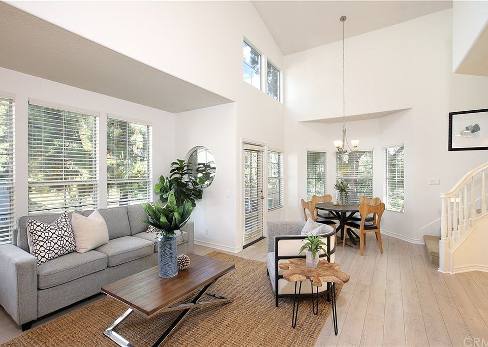 This light and bright Summit Condominium is truly in one of the best locations in the neighborhood. Offering privacy, this quiet end unit welcomes you to an open floor plan with tons of natural light. The kitchen includes stainless steel appliances and opens to a living and dining area featuring a fireplace and peaceful treetop views. The spacious master suite has a large walk-in closet and private balcony. Upstairs includes a light and open loft, which can be used as an office or den with full bathroom as well as a large storage area. The condo also includes a rare driveway, which only 9 units in the neighborhood offer. This gated community offers a resort-style pool and spa and steps to a private park. Close proximity to beaches, shopping and John Wayne Airport. ACCEPTING BACK UP OFFERS! Please submit.