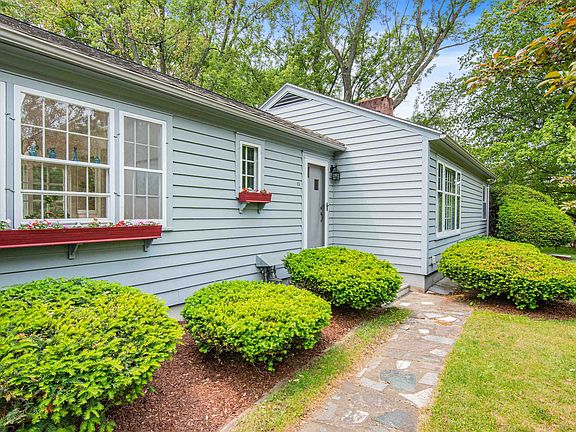 This immaculately maintained midcentury ranch is not one to miss! With touches of cottage and Colonial influence, this home is full of understated charm. Warm paint tones, original hardwood floors, chair rail and crown molding, large multipaned picture windows on either side of the living room, and a wood burning fireplace in its center create a supremely welcoming entrance. To the right of the living room are a full bathroom and two bedrooms with oversized windows. To the left of the living room is the kitchen, with many delightful details such as the single seat breakfast nook, soapstone countertops and integrated sink, paneled appliances including the Sub-Zero fridge, adorable pantry cabinets at the top of the basement stairs, and a Georgian era-inspired 3 handle faucet. One step down is the light-filled dining room with vaulted ceilings and skylight, entry to the one car attached garage, and sliding French doors. Step out onto the peaceful paver patio and experience the serenity of the flat, landscaped backyard with large mature trees and foliage for privacy. Wood siding, newer driveway (2019), quaint flower boxes, stone accented walkway, landscaped center island, and a Little Free Library steps away all add character and curb appeal. Pair all of this with the fact that you are seconds from all amenities, restaurants, and shopping, as well as just minutes from the highway and downtown Burlington, you couldn’t find a more perfect place to live!