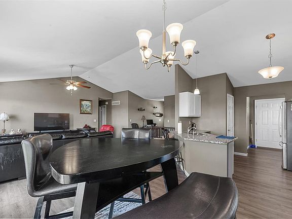 Welcome home! Make this 3 bedroom, 2 bathroom ranch home on a quiet cal-de sac yours! The open floor plan and vaulted ceilings in the main living space give the home a welcoming feel. The upgraded kitchen features white shaker cabinets with granite countertops, stainless appliances--with a double oven, breakfast bar and a pantry! Conveniently off of the garage is a spacious laundry room and mud room. The master suite is complete with a walk-in closet and full bathroom. Downstairs the walkout basement has an egress window and bathroom rough-in and awaits your finishing touches. It backs to the school's property so you don't have neighbors behind you!