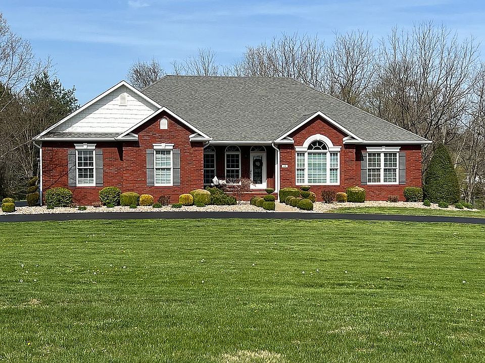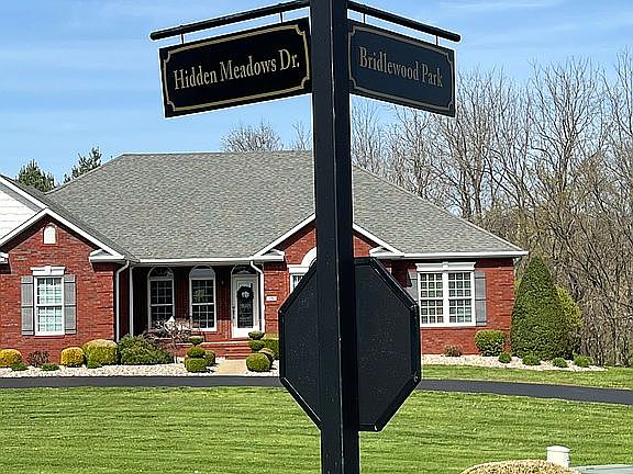 Beautiful custom built 3 bedroom/2 bathroom home on a corner lot in Hidden Meadows Subdivision( 1.52 acre lot) . Free flowing open concept. Kitchen has custom cabinetry- stainless steel appliances and an island bar with seating. Spacious master suite with his/her vanities and closets. 2 bedrooms on the main level with big closets. Two car garage- full finished basement with a family room great for entertaining, a 4th bedroom and full bath. Basement also contains a one car garage. Covered back porch to relax in the evenings. Call or text (270) 469-5872 to schedule a showing of this home.
