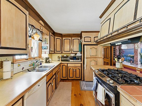 Fabulous one owner Vinyl sided 3-bedroom ranch with 2 full baths on a .88-acre lot offers 1792 S.F. (public record) of living area. This fine home has beautiful pine floors throughout. Many of the walls have designed stencil. Spacious eat-In kitchen with plenty of cabinet space & all appliances and electric fireplace included. The family room has a beautiful fireplace/woodstove. Gorgeous 3-season sunroom (SF not included) overlooking your professionally landscaped yard with many perennials in season. The formal dining room has pocket doors and is perfect for family gatherings. It leads to the living/sitting room. The main bedroom offers a full bath, double vanity sinks & walk-in closet & linen closet. There is a newly updated full bath & two other bedrooms with ample closet space & 1st floor laundry. The basement offers storage galore & has a separate work room for the handy person. New Heating system & electrical panel. Two car garage with attic storage. All furniture is included.