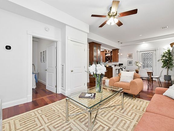 Unbeatable commuter location! Ideally located first-floor residence, boasting a spacious 2-bedroom, 2-bathroom layout with 9+ foot ceilings that enhance the open & airy floor plan. Large, thoughtfully designed custom kitchen with tall cherry cabinetry, granite countertops, and a convenient breakfast bar. The generous primary bedroom offers a comfortable retreat with an en suite bathroom, complemented by a nicely sized second bedroom. In-unit laundry, forced air heat, and central AC. Plenty of storage throughout with large closets and custom built-ins, plus dedicated basement storage. Private rear deck and fully-fenced common yard with back patio. Newer furnace (2023) and hot water heater (2022). Professionally managed, 100% owner occupied association. Less than 1/10 mile to the Orange Line at Sullivan Square Station, only ½ mile to the Green Line at East Somerville Station, and offering easy access to I-93, this home is a gateway to the best the city has to offer.