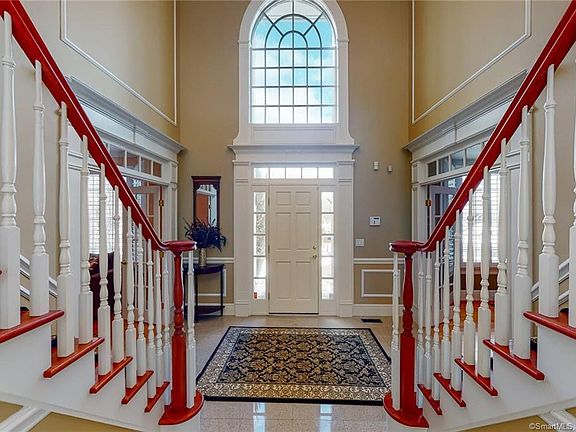 Perched regally on a hilltop, this gorgeous residence soaks in views of the Farmington Valley, and the peaks beyond. Pine trees offer four-season privacy underscoring its enviable location at the end of a cul-de-sac. Three stories of stunning design and delightfully flexible spaces ensure every familys needs can be easily accommodated. The family room pulsates with energy and life. Light streams from soaring windows, nature beckons from beyond great panes of glass, and a commanding fireplace draws everyone closer. An impressive, granite island anchors the white, gourmet kitchen, accented with thoughtful selections of grey stone and tile. Fine woodworking adds elegance and style to the spacious living and dining rooms. Working from home is a joy in the library lined with bookshelves, with an inspired fireplace. Adjacent to the study is a first floor ensuite, also ideal for an office or learning space. The Master Bedroom Suite is a true refuge, with a fireplace, sitting area, private balcony, his/her walk-ins, a spa bath truly without peer, and a fabulous room for yoga or peloton/strength workouts. All guest bedrooms are sunny and large with great closet space. The third floor is a tremendous open space, ready for your imagination. For active families, a sports lawn, hiking trails, top schools, and access to shopping and highways are reasons plenty to fall in love, but add over $150,000 worth of upgrades and improvements, and this house is exceptional. Period.