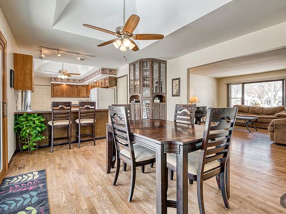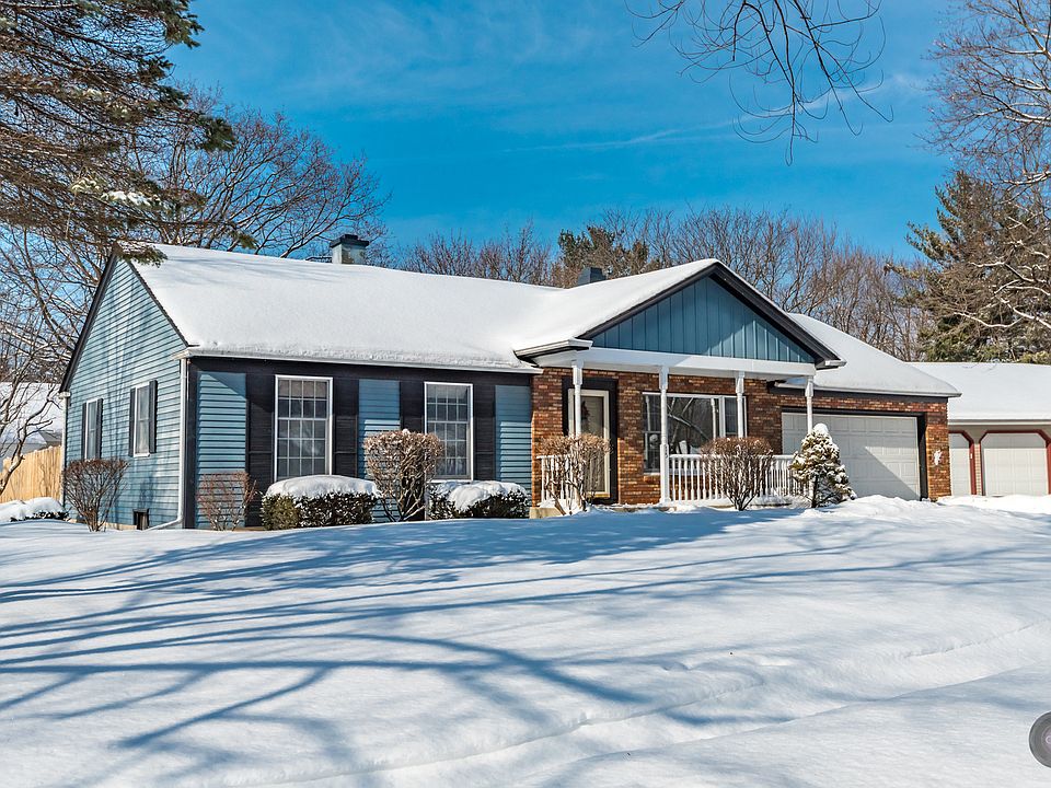 Nestled on a quiet cul-de-sac in desirable Boulder Hill is this charming 3 bedroom ranch with full finished basement. Large inviting living and dining room with newer hardwood floors open to spacious kitchen with vaulted ceiling and skylights. Dining Room also vaulted with additional skylights make this space light and airy!! Three large bedroom with access to hall bath. Additional half bath!! Lovely newly fenced in yard with nice deck, storage shed and play set is new owners so desire. Lower level has large carpeted family room with fireplace. An additional carpeted recreation room, laundry and plenty of built-in storage.!! Newer air conditioner, furnace and hot water heater.!! Great neighborhood with neighborhood schools. Brick facade!! Freshly painted! Move in ready!! Welcome home!!!!