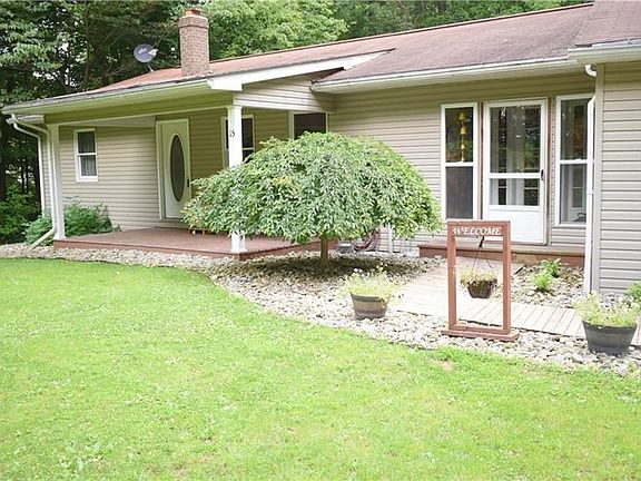 Nestled on 2.32 private acres, this charming ranch is waiting for you to call home. Perfect weekend retreat or full time home. 2 car detached garage. Beautiful landscaping and woods surround this home which is loaded with rustic charm. This home features a spacious living room, kitchen and dining room. First floor living at it's best. The dining room equipped with a pellet stove for those cool winter nights. Enjoy the peaceful surroundings this home has to offer