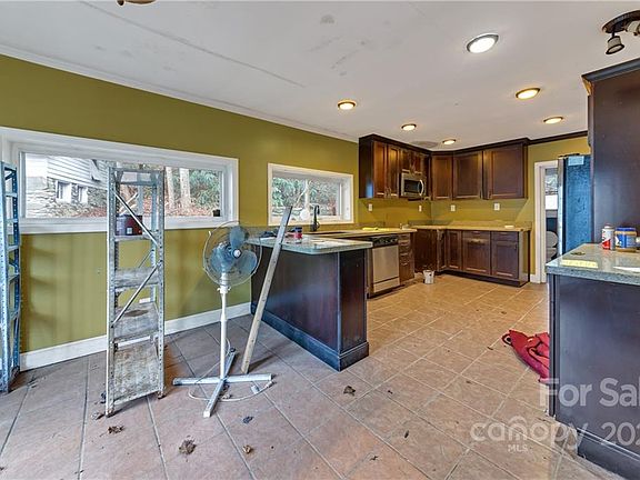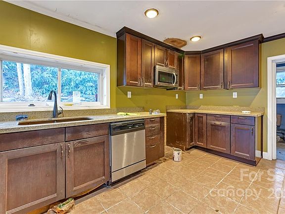 Possibilities abound with this 1.28acre Black Mountain property just 5 minutes to downtown. Ready for your vision, this 3 bed, 1.5 bath home sits next to a peaceful creek that you can listen to from your front porch. Home features marble exterior, rebuilt bridge, and a partially renovated kitchen. This is a special for investors or those with cash in hand. Property is zoned to potentially build additional units on property.