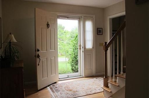 Classic center hall colonial on prime residential street.Gracious foyer,large liv rm and din rm w/ hardwood floors,center island applianced kit w/ granite and corian counter tops/eat-in area w/ slider to deck, rear hall with washer and dryer and separate half bath,family room w/ cath ceiling/brick fireplace/ceiling fan/wet bar/several closets/slider to deck and a loft/office overlooking fam rm w/ 2 skylights.Second fl offers a master suite w/ huge bathrm and whirlpool tub,3 more bdrms and bath.CENTRAL AIR!