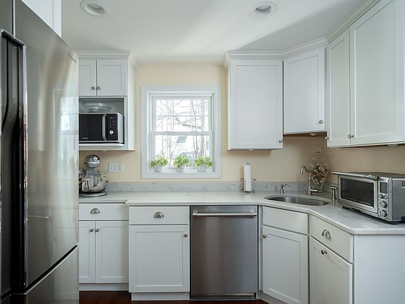 Opportunity doesn’t always knock twice … buyers remorse gives you a chance to call this HOME. Stately sitting on a corner lot is where you will find this lovely home. Newly renovated gourmet kitchen is a dream for anyone who enjoys cooking …packet with white cabinetry, stainless steel appliances, & quartz counters accented with tile backsplash. Front living LR is filled with natural light accented with wood burning FP, hardwood floors and window seat ,French doors lead to former sunroom that makes a great den or office , DR has matching window seat, continues hardwood floors and custom built ins. 2nd floor is where you will find 3 spacious bedrooms with wall to wall carpet, one with wall of shelving/bookcases . Updated full bath with Mosaic tile floor and beadboard wall accents. Bonus features include heated walk up attic ready for finishing with potential for 2 additional rooms . Outside space includes shed, fenced patio area and side yard with playset.