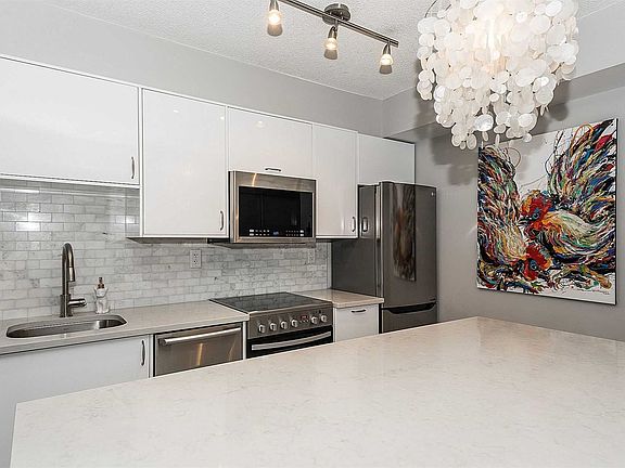 Rarely Offered 2Br Layout In Quiet Boutique Bldng Overlooking Tranquil Courtyard. $$$ Spent On Quality Upgrades Inc. New Dream Kitchen With Large Quartz Waterfall Island, Cabinetry, Undermount Sink, Marble Backsplash And S/S Appliances. Building Offers World Class Amenities (Gyms, Pool, Skydeck Hottubs, Basketball, Kids Playroom, Etc). Steps Away From Newly Opened State-Of-Art School, Daycare, And Community Center, Sobeys, Transit, Restaurants, And Much More