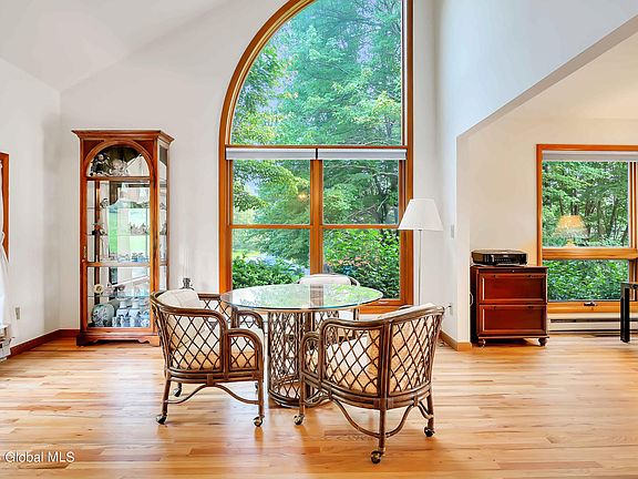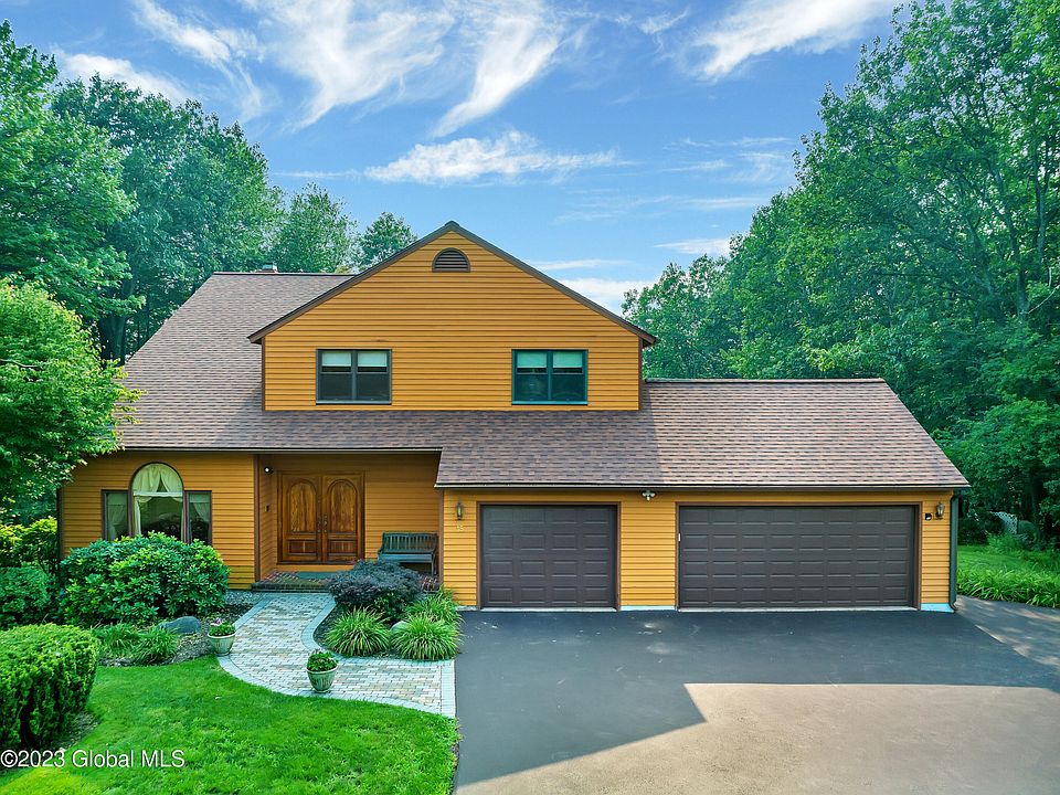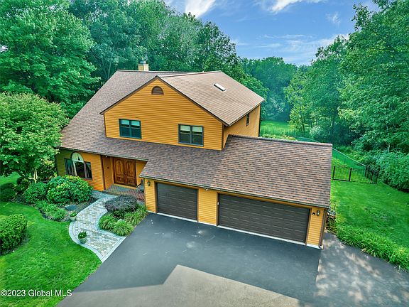 Open House Cancelled. Custom, Modern, Spacious Contemporary 4 bed 2 full, 2 half baths home located in prestigious/upscale Green Horizon Estates. Featuring open floor plan spacious primary suite with balcony, hardwood floors, oversized sunroom overlooking private back yard with gardens and wild life galore! Finished walk out basement with bath is offering in-law potential! Over an acre of privacy, peace & tranquility. Large deck. central vac, 3 car garage minutes to downtown Albany, stores, Library, schools and easy access to I90,787, Set on a picturesque 2.2 acres in East Greenbush School dist, Genet!