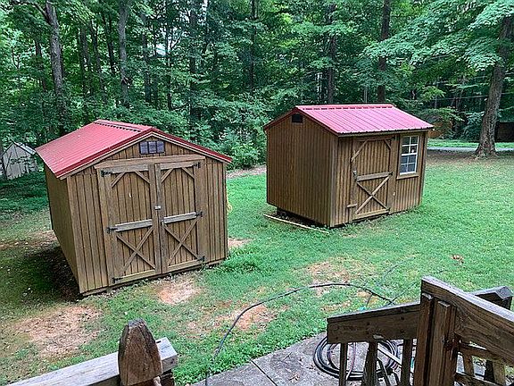 Near the Barren River Lake and Walnut Creek Marina. Beautiful A-frame home, with great views through large windows of with multiple large trees on 1/3 acre (2 lots) There are large decks front and back, with good setback from streets on corner lot. The appliances and HVAC are new, with new floors upstairs. There are also two new attractive wood 10 x 12 Storage Sheds.