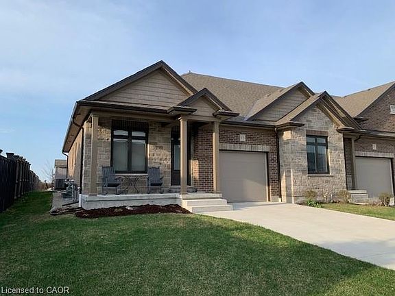 Beautifully maintained freehold end-unit bungalow townhouse that combines comfort, style, and practicality. This rare gem offers 2 spacious bedrooms and 2.5 bathrooms, ideal for those looking to downsize without compromising on space or modern conveniences. Step inside to a bright, open-concept floor plan, enhanced by additional side windows that fill the home with natural light. The main living area is perfect for entertaining or relaxing, with a seamless flow. The kitchen features a large center island, Quartz counter tops an abundance of cabinetry and gorgeous tile backsplash. Step out back to a low-maintenance concrete patio, complete with a 15x13.1 ft retractable awning—perfect for outdoor dining, morning coffee, or relaxing in the shade on sunny afternoons. The lower level provides a large rec room and full 4pc bathroom, the undeveloped area allows for expansion of the rec room and an additional bedroom, still giving you plenty of storage space. Enjoy the convenience of a oversized garage, lots of extra storage space here. All this located in a quiet, friendly neighbourhood offering the best of small-town living with easy access to all amenities. Don’t miss your chance to own this move-in ready bungalow in one of Elmira’s most sought-after neighbourhoods!