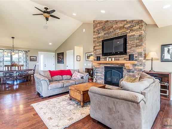 One owner custom built 5 bedrooms/3 bath home on over 1-acre w/ fantastic views. The front porch welcomes you home to an open living room w/ fireplace, huge windows, and a fantastic kitchen with utility/mud room off the 3-car garage. Enjoy the breakfast nook in the morning and formal dining room in the evening. The master suite is large with a walk-in closet and you will find a tile shower and jetted tub in the master bath. The walk out lower level is a great space with a perfect family/theater room, surround sound and wet bar. The 2 bedrooms downstairs are large, and the full bath has a custom tile shower. Welcome fall evenings from the patio w/ fire pit for entertaining. This home is well done for enjoyment inside and outside! The windows and views are stunning. You will find this home move in ready. Plenty of space to build a shop. This home is located 5 miles south of Laurel.