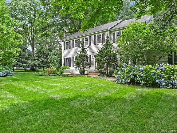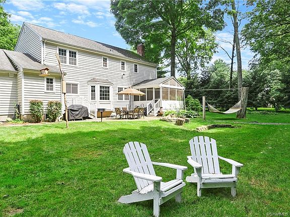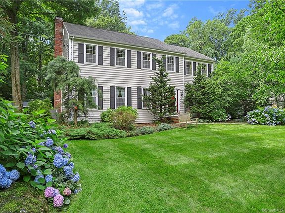 Offering a four bedroom 2.5 bath "Nichols" colonial in a most convenient yet quiet neighborhood setting. The landscaped property is truly level with wide lawn spaces front and rear for play/recreation plus a forest backdrop and side yard hedging for added privacy Inside, the kitchen is a custom design with cherry cabinetry, stainless steel appliances and granite countertops. The main level laundry and grade level, garage access is adjacent. Hardwood floors in all major rooms, the family room with built in bookshelves, raised hearth brick fireplace and French doors opens to a charming screened porch and patio. Back inside, the second floor bedrooms are all generous in size with the primary or master being en-suite with walk-in closet. The lower level is unfinished. However, this space offers abundant storage or future finishing potential.. some cosmetics needed outside but a fantastic opportunity and potential with great curb appeal in a prime Trumbull location and award winning school districts!