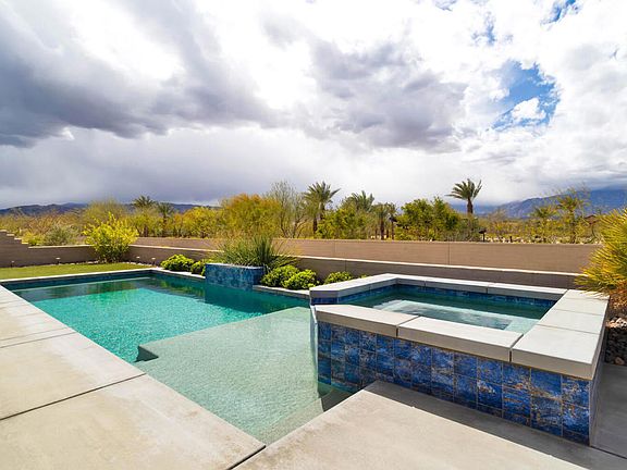 **Back on the Market** Discover Del Webb at Rancho Mirage, an upscale 55+ active adult community. Premium location with elevated mountain views. Immensely upgraded Preserve model. High ceilings, contemporary open floor plan, stacking sliding glass doors open to sparkling pool, waterfall spa & VIEWS...home is a showpiece ready for you to just move-in and ENJOY. Appreciate thousands in builder upgrades and designer appointed finishes. Gourmet kitchen with oversized island, expanded cabinetry, pendant lighting, quartz & granite counters, walk-in pantry, adjacent dining area open to great room with built-in pre-wired entertainment center and buffet wet bar--PERFECT for entertaining! Oversize windows bring in natural light & frame picturesque views. Front guest room & bath, separate den with glass French style doors, spacious primary suite, spa-like bath and walk-in closet. Custom window shades, porcelain wood-look tile, carpet in bedrooms, leased solar, built-in fire suppression system, tankless water heater. 24/7 Guard gated community offers world-class amenities: Outlook Clubhouse, resort-style pool & spa, tennis, pickleball, bocce, fitness center, miles of paved pathways, billiards, golf simulator & more! Enjoy gorgeous interior, experience the outdoors, you're close to restaurants, shopping, golf & all desert attractions--the IDEAL desert home can be yours.. (Note: Some Interior Pictures are Virtually Staged). *subject to cancellation of current escrow*