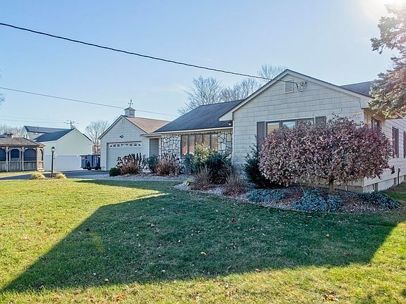 Have you been searching for a conveniently located single flr ranch? Your opportunity is NOW. Enter this charming home through a covered, front porch into an open flr plan that is ideal for today’s entertainer. The large & inviting entryway opens to a dining area & bright, cheerful kitchen. Continue on to the sizable living rm with hdwd flrs & newer, expansive windows that welcome in plenty of natural light. The oversized primary bdrm & 2 more bdrms all have hdwd flrs. Bthrm includes an updated shower. The unfinished bsmnt includes a ¾ bthrm & is your blank slate for all future plans. Make your way outside to the attached 2 car garage with ample storage space AND an attached storage shed. The splendor continues on the exterior with newer vinyl siding & a stone facade. This flat property is just over a half acre & has stunning landscaping. Enjoy the outdoors in the 3-season gazebo equipped with ceiling fans & connection to electricity! This home is not one to be missed.