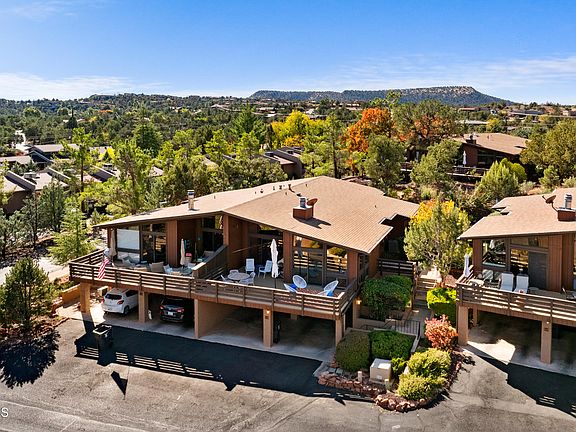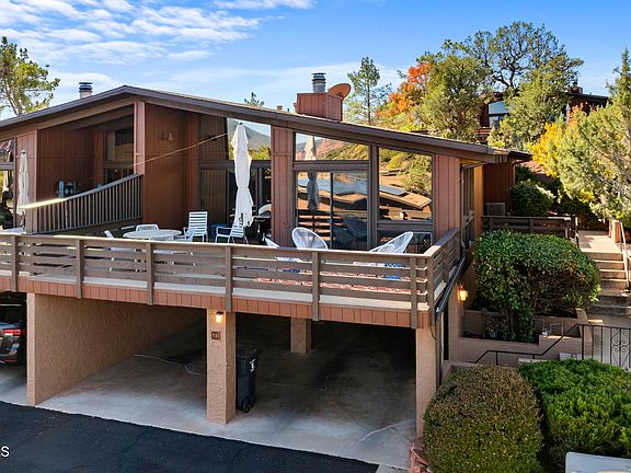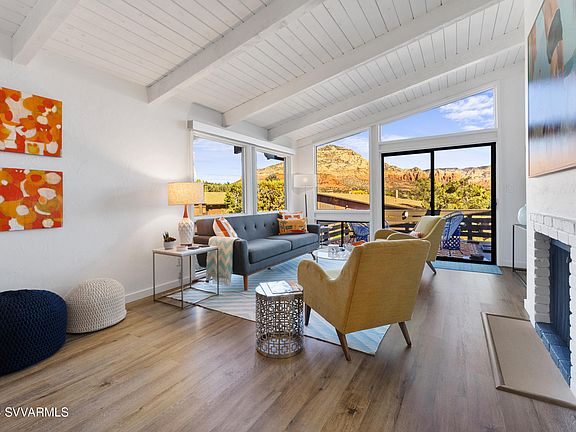 Come enjoy this centrally located town home with majestic, panoramic red rock views! The home is turn key and equipped with several upgrades that modernizes the home. Nestled in West Sedona, you are walking distance to hiking, shops and much more! Schedule your showing today to bask in the beauty of your new forever home. All new appliances, water pressure regulator installed, new AC blower and compressor, new deck with 5 year warranty, EV plug in carport, all Kohler bathroom fixtures, gutters and draining installed to redirect water away from the property. Personal property available though separate bill of sale. Three month minimum rental restriction. Unit feels brand new and is turn key with panoramic views!