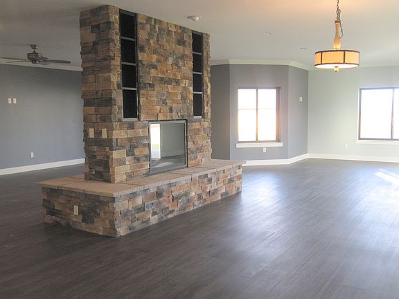 Incredible one level living in Surrey! This home is 2,780 sq ft with 4 bedrooms and 4 bathrooms. It features a two way fireplace in the center of the living room, family room, and dining. The kitchen has beautiful cabinets with a large pantry and eat in space plus there is formal dining that has a built in bar. The first bedroom is perfect for guests being it is off to one side of the house and has its own private bath! The master bedroom has a huge walk in closet, tile shower, whirlpool tub, and double sinks. The laundry has lots of built in cabinets. The upgrades are never ending with colored concrete driveway, covered patio in back also with colored concrete, vinyl flooring, granite on every counter, two tile showers, and custom cabinets. This home offers great entertaining space!