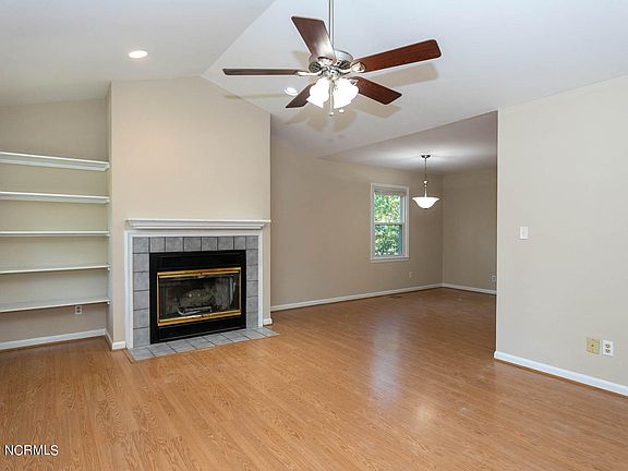 This charming home on wooded lot in Village Acres in Pinehurst offers a bright, open floor plan. It features a spacious living room with a vaulted ceiling and gas log fireplace. It opens to the dining area and kitchen. It has hardwood floors throughout the main living areas. The owners bedroom with en-suite bath has a glass door that opens to a patio in back. There is also a spacious bonus room. An inviting porch stretches across the front of the house. A private backyard is fenced. This home is in a great neighborhood that is convenient to FirstHealth hospital facilities, medical offices, shopping, dining and the Village of Pinehurst Greenway Trail system.