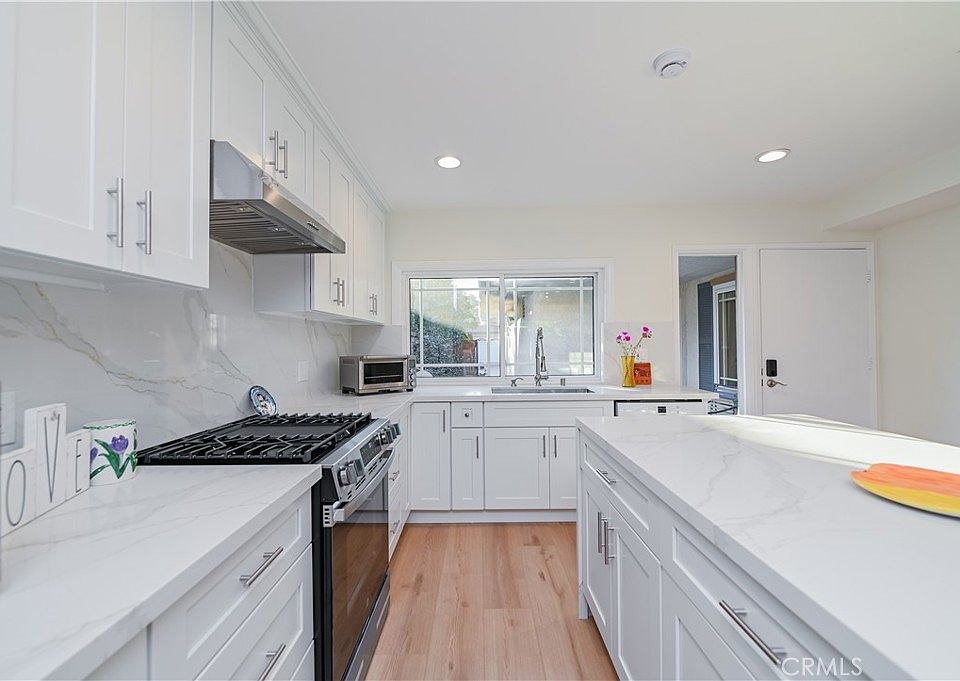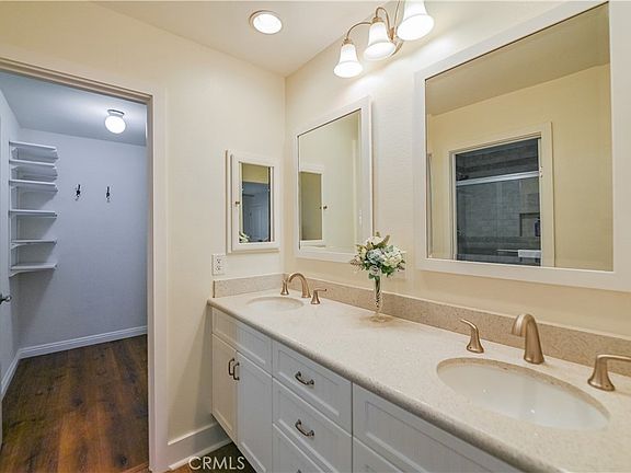 Furnished. Remodeled. 2 bedrooms,2 bathrooms downstairs and 1 bedroom +1 bathroom upstairs. This beautifully remodeled home has been meticulously maintained .Partially new flooring.Dual pane windows and patio slider. The renovated bathrooms are spectacular with custom mosaic tile, natural stone and glass countertops. The master suite features a walk-in closet with custom organizers, ceiling fan and wainscoting. The kitchen opens to the Great Room with fireplace, wet bar, soaring ceilings and an abundance of natural light from multiple sources. The entry courtyard and fenced rear yard are both private and secure. 2 car garage with private driveway, total 4 car parking spaces. The part of ceiling on hallway upstairs is low. The schools are among the best in California and shopping, dining and freeway access is nearby. The association has 2 resort style pools, spas, lighted greenbelt, BBQ and clubhouse.Close to a coming soon supermarket.