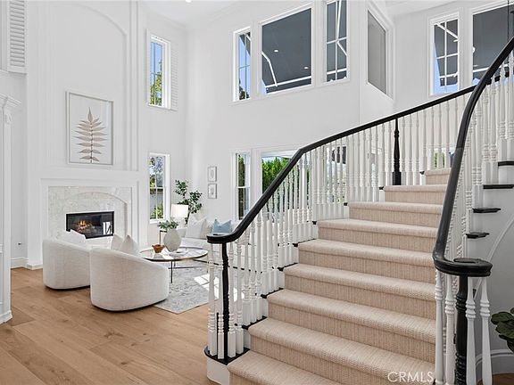 SWEEPING VIEWS And LOCATION! Amazing Sunset and Golf Course Views Overlooking the 18th Fairway of the North course at Coto de Caza. One of only 11 homes on a single loaded cul de sac street with a short walk to the Coto de Caza Golf and Racquet Club. The Simi-custom Home was designed and built by Stonefield Development with a tradition of beautiful and unique architectural design and with exceptional quality features throughout like the solid core 8 ft. wood doors, dual staircases, and walk-out view balcony off the primary bedroom. Three gas-burning fireplaces. The exquisite residence delivers the ultimate in luxury with natural elements in its open light and bright 5000+ sq ft. The residence is graced with a two-story volume ceiling in the Entry, Formal Living, and Dining Rooms. Comforts include 5 spacious bedrooms, 4.5 bathrooms, 4-car garage, Library/Office, and large open upstairs lounge area for the family or office plus A Separate area for reading/ study. Many large Picture windows (9 are new and installed by Anderson). The home has many modern upgraded features, including wide plank wood flooring throughout (except the two staircases), which has beautiful wool carpeting. All new Toto toilets, including a bidet washlet, are in the primary bathroom. Completely remodeled master bath with Newport Brass Fixtures, solid slab stone shower, and counter tops, a free-standing tub for that soothing bath while enjoying the stunning views. The open Kitchen has a large walk-in island with a Viking cook top, two new Viking dishwashers, and a spacious nook with a large picture window to enjoy the views of the golf course and hills. Opening to a great family room with a new floor-to-ceiling custom lime stone fireplace with custom mantel. The French door leads to the partially covered and open patio, a lush backyard with panoramic views. A convenient back staircase leads to the 2nd level, with 4 spacious bedrooms, including the main suite has a wall of windows for the views. a fireplace, and a walk-out balcony. All new Emtec black hardware and new black thresholds throughout, Newer paint inside and out. Epoxy Garage floors and storage cabinetry. All new lighting inside and out. Many electrical outlets were replaced. New awnings on 7 windows, updated landscaping. Some roof areas replaced, new rain gutters were installed, and so much more. Must see to appreciate.