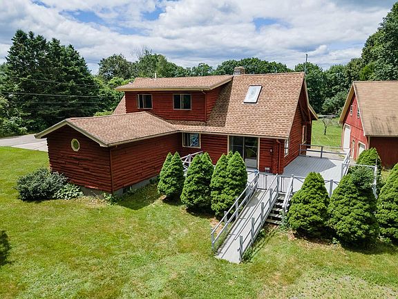 Privately located Log Home - Gorgeous 3-acres - 36 x 36 garage/barn with 12ft ceilings: come and check out this amazing property! The home features a front-to-back living room with cathedral ceilings and skylights, a spacious eat-in kitchen, full bath and first floor primary bedroom and den. The second level has a loft bedroom and a full bath. Enjoy the beautiful acreage from the farmers porch. Heated walkout basement. and generator hookup. Attention contractors! The garage/barn has two garage doors, one door is 11 feet tall. There are steel beams, so the interior is wide open. It could accommodate 6+ cars or a quantity of equipment, snowmobiles, boats, tractor or ATV's. It has been used as a contractor business location. The stairs lead up to what could become a large accessory apartment, storage, game room, or office. There is so much opportunity here. Come bring your ideas and vision. The land itself will capture your heart. Your homestead awaits!