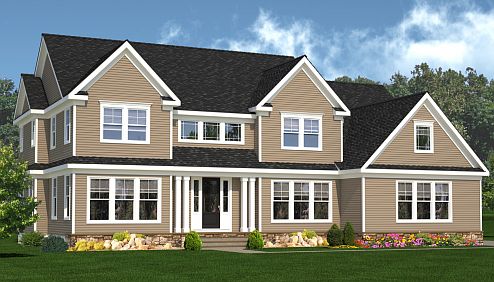 The exterior facade of the Crosswick exemplifies the Shore Colonial theme. The expansive interior can be enhanced with an upstairs princess suite optional bathroom, as well as a fifth bedroom on the first floor with a full bathroom, creating the potential for a 5-bedroom, 4-bathroom home.