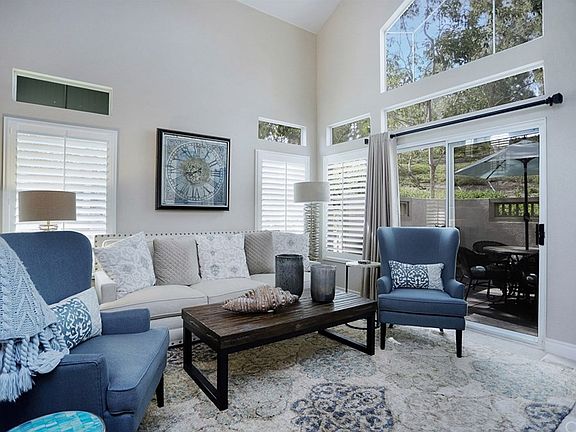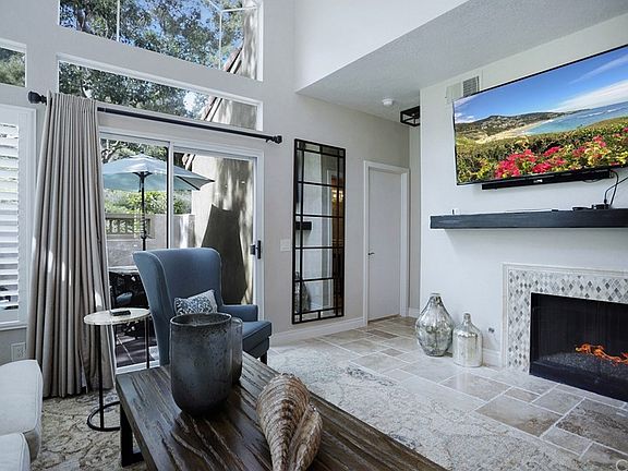 This home is truly stunning! With three bedrooms and two full baths, this charming townhouse is fully remodeled and updated. When you walk in you'll notice the soaring ceilings and find that no detail has been left undone. With travertine tile flooring throughout the home, the downstairs is warm and inviting. Plantation shutters grace the windows and let in tons of light in this corner unit home. The kitchen is a dream! Espresso cabinets, beautiful stone counter-tops, stunning back-splash all with stainless appliances, farm style sink and stylish lighting features. With one bedroom and fully updated bathroom downstairs you have versatility in how you use the home and plenty of space to spread out. Upstairs, the master bedroom also has soaring ceilings, plantation shutters and a spacious, updated master bathroom. The additional secondary bedroom has shutters and view of the quiet greenbelt in one of the prime locations in this community. You can relax outside on your very private patio and enjoy the California weather or take a dip in the community pool! A short walk from Chapparosa Park and George White Elementary school. This home won't last long!