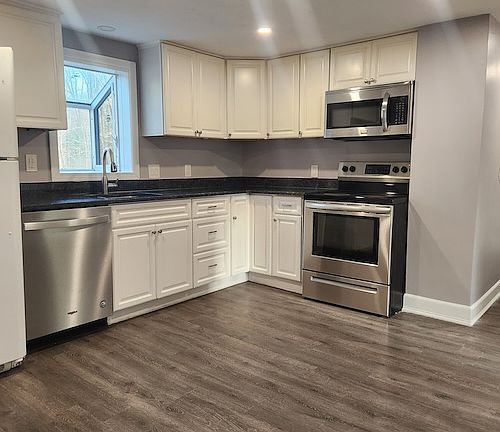 Discover the perfect blend of comfort and convenience in this two-level, 3 bedroom, 2 bath single-family home in the Rochdale area of Leicester. The first level features a fully applianced kitchen, equipped with granite countertop, that opens up into the living room/dining room. There is also a full bath on the first floor, as well as a bedroom. Upstairs, you find 2 more bedrooms. One of the bedrooms has a private porch overlooking the backyard. There is another full bath on this level and a storage closet. The entire home has been freshly painted, and has vinyl flooring throughout. Enjoy the large backyard year-round with the firepit. For your convenience, there are laundry machines in the basement. From the six-vehicle parking adjacent to the side entrance to the house, will present a large heated foyer. No smoking of any kind please. Pet friendly. Tenant pays for oil baseboard heating. oil hot water, electricity, and water/sewer. Tenant maintains lawn care and snow removal. 1st, last, and full security deposit to move-in. All candidates are subject to full background check including housing court and must have verifiable income of $100K+ AND credit of 630+. One year lease. No smoking of any kind please. Pet friendly. Tenant pays for oil baseboard heating. oil hot water, electricity, and water/sewer. Tenant maintains lawn care and snow removal. 1st, last, and full security deposit to move-in. All candidates are subject to full background check including housing court and must have verifiable income of $100K+ AND credit of 630+.