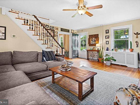 MOTIVATED sellers. NEW PRICE. Welcome to this Absolutely Charming center hall colonial that combines modern features with traditional elegance. The property boasts a modern kitchen with beautiful granite countertops, an eat-in alcove, and all major appliances. The gleaming hardwood floors throughout the home add to its timeless appeal, and the detached 2-car garage offers unexpected convenience for an older home. Step into the beautiful living room and marvel at the brick fireplace, mantle, and moldings that exude a warm and inviting atmosphere. French doors lead to a den/study that can easily be converted into a guest bedroom for your convenience. Continue through another set of French doors to the formal dining room, perfect for hosting family dinners or entertaining guests. As you make your way upstairs, you'll find three bedrooms, each exquisitely designed to offer a comfortable and cozy retreat. One bedroom features a built-in desk, perfect for working from home. Both levels feature elegantly upgraded full bathrooms, which add to the home's modern charm. Outside, the fenced rear lot features meticulous landscaping, a paver patio, and a custom-made gorgeous pergola. The pergola has a sturdy roof and a ceiling fan, offering an additional cozy three-season living space for you to enjoy. The full basement and newer windows provide added convenience and energy efficiency, respectively. This home is truly immaculate and stately, providing the perfect blend of traditional elegance and modern amenities. Don't miss out on the opportunity to make this charming property your new home.