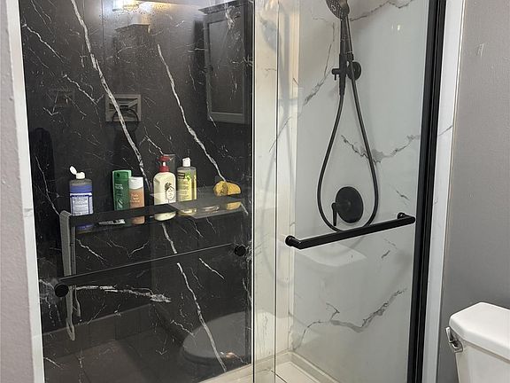 Bathroom professionally upgraded to walk-in shower and contemporary fixtures.