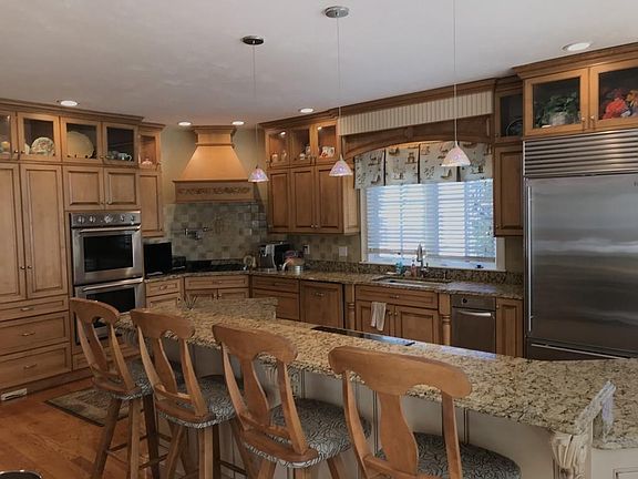 - Kit Dscrp: Dining Area, Flooring - Hardwood, Countertops - Stone/Granite/Solid, Kitchen Island, Stainless Steel Appliances, Wet Bar, Open Floor Plan, Recessed Lighting, Pot Filler Faucet, Exterior Access, Walk-In Storage, Crown Molding