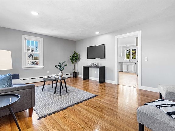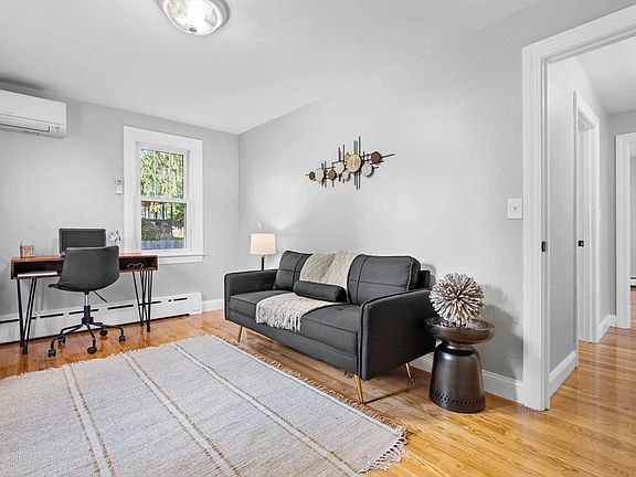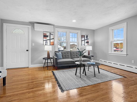 Are you looking for a home that offers privacy and space yet close to commuter access? This charming home offers 3 bedrooms, 2 bathrooms and over 1500 sf of living space. The main level has 2 convenient entries - one into the spacious living room, and the other through the enclosed porch from the driveway, into a bright eat-in kitchen. The main level boasts gleaming refinished hardwood floors, and two bedrooms on the main level which share a large full bath. Through the office or sitting room, you'll find stairs to the large primary bedroom, complete with brand new carpet, plenty of storage, lots of natural sunlight, and its own full bathroom. Home offers mini-split systems in multiple rooms for efficient heating and cooling. Very large unfinished basement offers bright clean laundry and storage space. Big fenced-in yard, perfect for outdoor activities, entertaining. Located in a prime spot with easy access to major routes and the MA Turnpike, shopping, and restaurants.