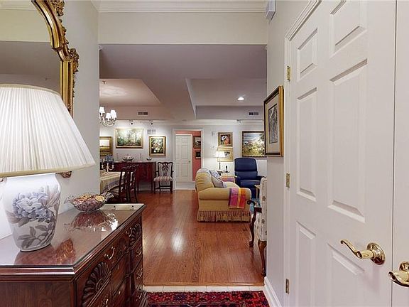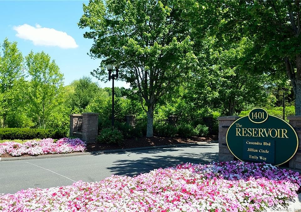One of the Best Locations in the Building. Gorgeous condo at the Promenade at the Reservoir-a 55+ community. Wonderful Pet Friendly complex. Comfortable light & bright first floor End unit with 2 beds, 2 baths, 1 car garage parking. The engineered wood floors welcome you to a fireplaced Living-Dining Room Combo with 9-foot ceilings. The formal Dining Room area has a lovely tray ceiling, and the Living Rm area has French doors to a private patio. Large eat-in Kitchen with Gas Range, granite counters, stainless appliances. The laundry Room is off the kitchen. Master Bedroom Suite with Walk-in closet, Master bath with lots of storage, double sink vanity, shower & Tub. Spacious 2nd Bedroom used as a Office and full Hall Bath. Secure Lobby with resident Mailboxes and elevator to underground garage parking and individual locked storage rooms. Extensive walking trails with pathways filled with flowers, shrubs, ponds, and a gazebo. Enjoy a wonderful community convenient to Highways, Mall, Medical Center and West Hartford Center.