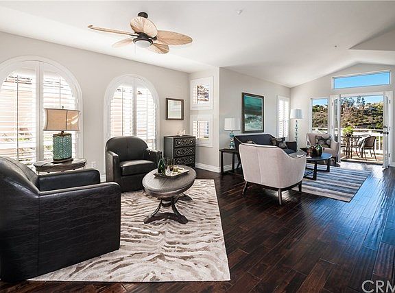 This elegant residence is located above the 9th fairway of the Monarch Beach Golf Course and offers both sweeping ocean and golf course views. Additionally, this home features warm wood floors, freshly painted interior and superb custom upgrades which includes custom spa style master bathroom, energy efficient LED lighting, quartzite counter tops , new stainless appliances, plus more! The walk out balcony offers a picture perfect setting for a life filled with casual beach living. The large rear yard is appointed with a covered patio plus an outdoor kitchen. While the home is perched above the golf course, it is a short walk down a nature trail to the sandy shores of Monarch Beach. The residence offers 3 bedrooms, 3 bathrooms and an open floor plan. A TRUE PLEASURE TO SHOW!