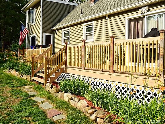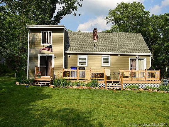 Motivated Seller!!!!! Remodeled, 1464 sq. ft., Cape on cul-de-sac, bordering open space, located near Crystal Lake in Ellington. This 3 bedroom, 1 bath home has many upgrades. Remodeled in 2006 with Stainless Steel kitchen appliances, vinyl siding, well pump and hot water heater, this westerly-facing home has an abundance of natural light. Spacious new deck leads to living room/den with slider to. Open design kitchen to Dining area with cathedral ceiling and large picture window, maximizes space, while a first-floor, hardwood floor Master bedroom with Slider to deck is ideal for 1-level living. A second, off-kitchen bedroom and tastefully remodeled bath complete the first floor. The second floor contains a third bedroom and a loft/family room. The home sits on a full basement with hatchway, is wired for a generator hookup, and has deeded beach rights to Crystal Lake!