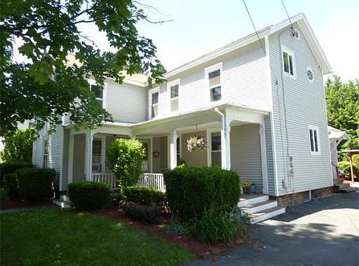 Beautiful and impeccably maintained 2 family home in prime downtown Easthampton location. Great curb appeal, with front porch, nice plantings, carport, and shed. First floor unit is currently rented and offers mudroom with washer and dryer, large kitchen, living room, and two bedrooms (one currently used as den). Second floor apartment has two bedrooms, living room and kitchen. Nicely updated over the years, with newer Buderus boiler, separate electric services, windows and siding. Carport for covered parking. Ideal owner occupant scenario.