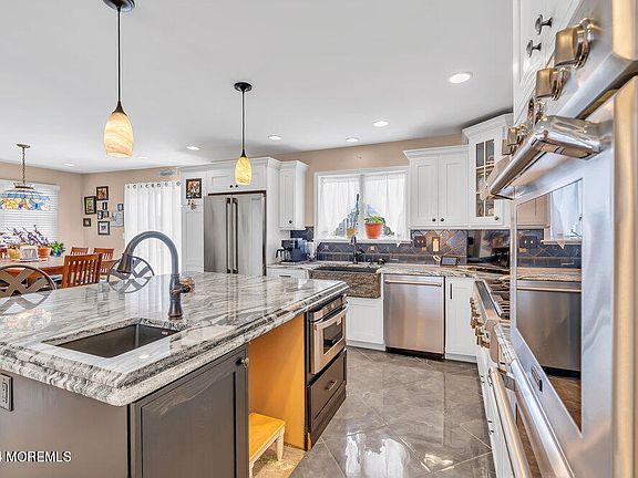 Gorgeous seashore home within walking distance to private beach and high speed ferry. This home features a wide open layout leading to a chefs kitchen with granite countertops all stainless appliances, double oven, large island, and beautiful cabinetry. The upstairs master bedroom is bright and airy with walk in closet and huge master bath with double sinks, jetted tub and ceramic tiled shower. All bedrooms have ample lighting and are well sized. The basement is huge with tons of storage and parking space, There are large decks all composite materials and a large backyard for entertaining. Everything is newer and up to date including the Generac generator and insta hot system. This is a must see! Walking distance to all restaurants ,shopping, beaches, and high speed ferry to Manhattan.