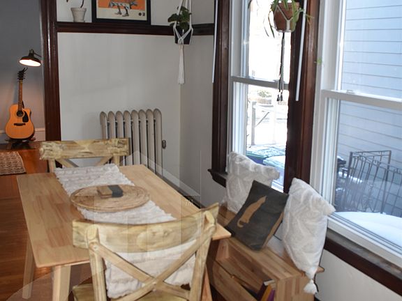 Lovely 2-bedroom apartment on the 1st floor of a two-family home with hardwood floors throughout, formal dining room, eat-in kitchen with dishwasher & gas stove, back yard and porches. Free, on-site laundry. Very close to new greenline stops at Gilman Square and Magoun Sq + just over a mile to the Porter Square Red Line. All the windows have been replaced and are nearly new, and that is great for your heat bill! (Reference #137426) April 15th 23 Central Rd Somerville
